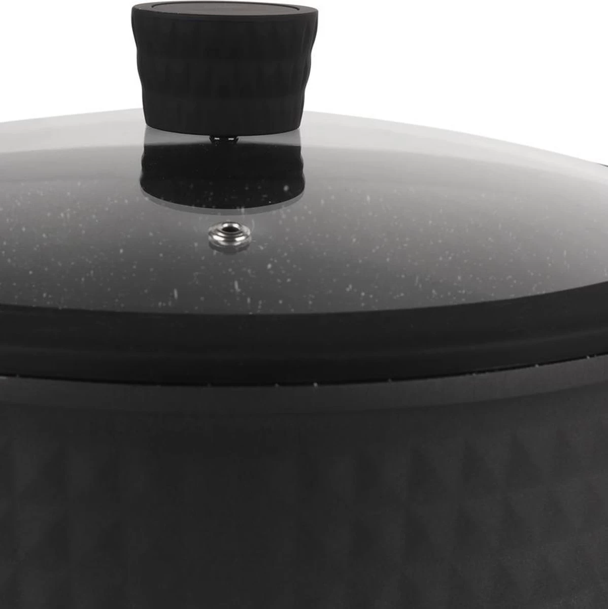 - Kookpan met glazen deksel: inhoud 6.44 liter, diameter 28 cm
