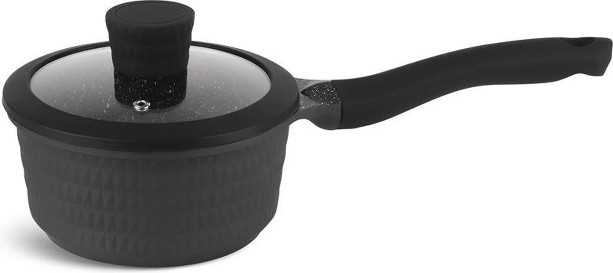 - Steelpan met glazen deksel: inhoud 1,28 liter, diameter 16 cm