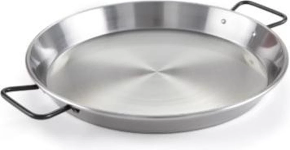 Deze plaatstalen Paella pan heeft alles wat u zoekt om de mooiste en beste paella’s te maken. De ronding in de rand is ontworpen om ingrediënten gemakkelijk te sauteren en door elkaar te spatelen. De wijde uitloop van de rand is er voor om de inhoud makkelijk uit te schenken. De pan heeft twee grepen, zodat u het gewicht beter kunt dragen en zorgt voor een authentieke look. Kortom, een pan die zowel traditiegetrouw als functioneel een aanwinst is in jouw keuken.