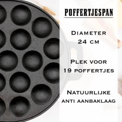 Poffertjespan – Gietijzer – Ø 24 Cm – Poffertjesmaker – 19 Poffertjes – Poffertjespan Inductie