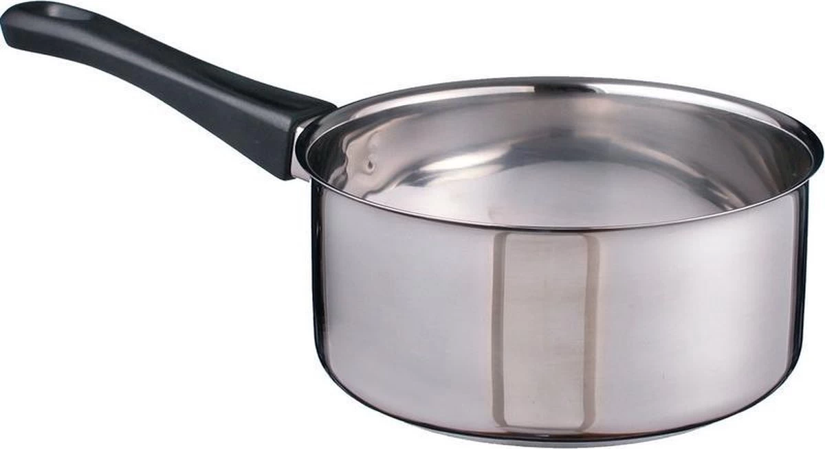 RVS steelpan/sauspan 16 x 7,5 cm. Dit steelpannetje heeft een extra sterke, 3-laags capsule thermische bodem en een warmte isolerende handgreep met vlambescherming. Het pannetje heeft een halve liter en een liter aanduiding aan de binnenkant.