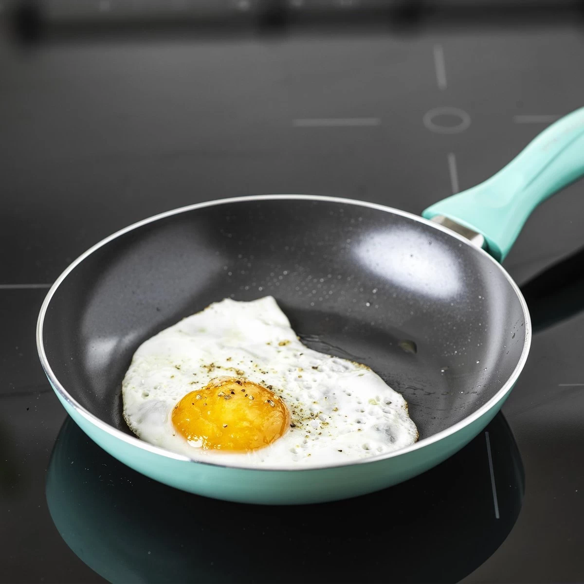 De VitaVerde Expert koekenpannen warmen snel op en zorgen voor geslaagde bakresultaten op alle warmtebronnen, ook inductie. De comfortabele handgrepen in bakeliet blijven altijd koel, zodat je geen pannenlappen meer nodig hebt. Het frisse Turquoise design staat bovendien mooi in elke keuken!