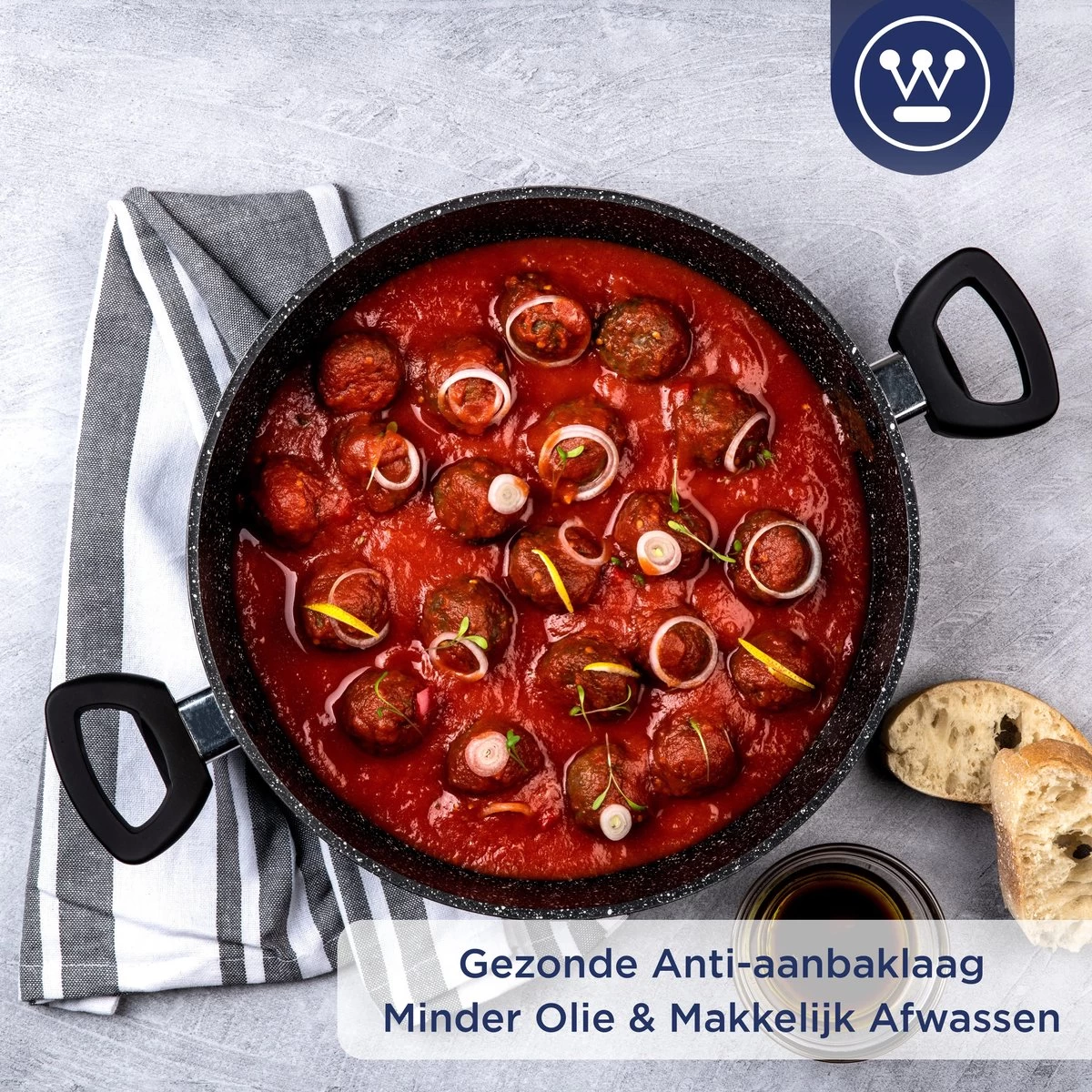 Door de innovatieve anti-aanbaklaag van Westinghouse heb je minder olie of vet nodig dan bij traditionele pannen. De anti-aanbaklaag is van uiterst hoge kwaliteit en 100% gegarandeerd vrij van PFOA of andere schadelijke stoffen. Zelfs bij hoge baktemperaturen komen er geen schadelijke dampen vrij en kan je gegarandeerd veilig en gezond koken.